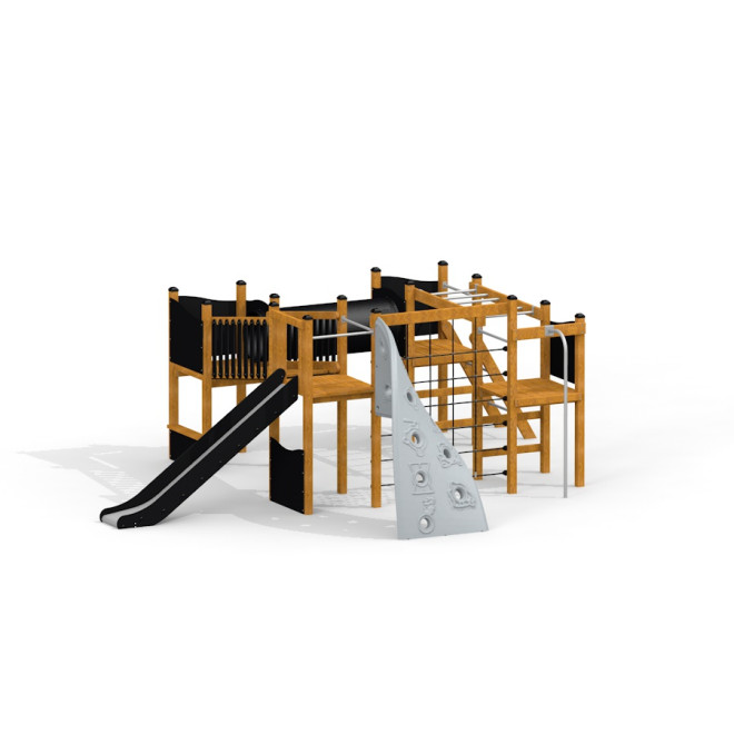 This playground unit is crafted from high-quality larch wood, known for its durability and natural resistance to the elements. Complemented by stainless steel and galvanised steel components, the structure ensures long-lasting strength and stability. Additional materials such as recycled HDPE, reinforced PP rope, LLDPE, and PE enhance safety and provide tactile, weather-resistant features that stand up to frequent use and outdoor conditions.