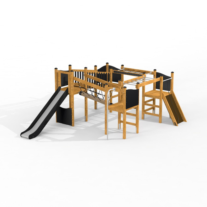 Challenger Nature II enhances any outdoor environment by offering multiple play opportunities such as climbing, sliding, and balancing. Its natural wood finish blends seamlessly with park and garden settings, making it perfect for schools, community parks, and recreational centres aiming to promote active lifestyles and social interaction among children.