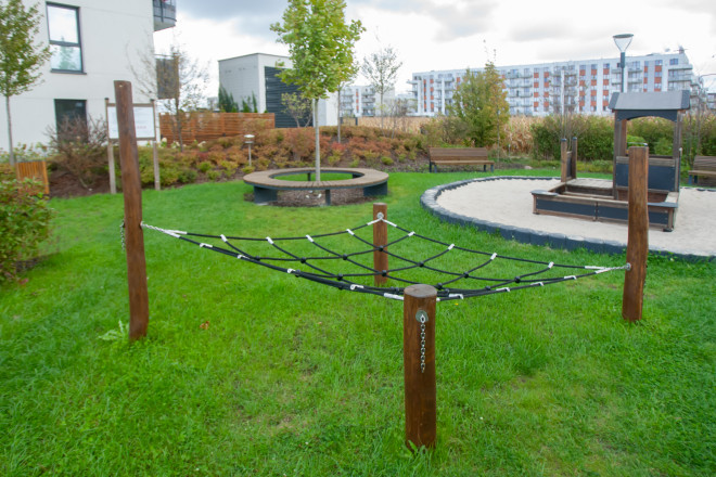 One of the most important aspects during the production of certified play equipment, is to use only the highest quality components. Our rope is easy-to-handle - even at low temperatures. It has a high breaking strength and good wearing qualities. Looks like a rope made from natural fibres.Diamond net – natural climbing fun that challenges and engages.