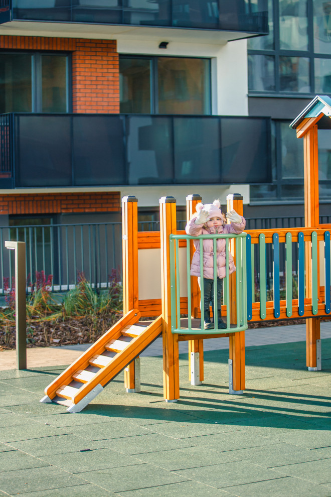 This playground is crafted from durable larch wood complemented by stainless steel and powder-coated steel elements, ensuring long-lasting strength and resistance to weather conditions. The use of anti-slip waterproof plywood enhances safety on walking surfaces, while high-density polyethylene (HDPE) and polyethylene (PE) components provide smooth, safe finishes. Additionally, steel coated with plastisol contributes to the robust and corrosion-resistant framework.