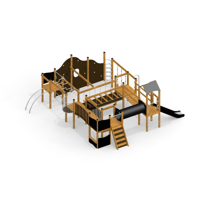 King-Kong Nature II is perfect for parks, schools, and community play areas seeking to blend natural materials with engaging play features. Its varied elements support physical development, social play, and creativity, making it a versatile addition to any outdoor recreational setting.
