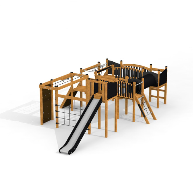 Constructed from durable larch wood, stainless steel, galvanised steel, recycled HDPE, reinforced and soft polypropylene ropes, anti-slip waterproof plywood, and PE, Searobber Castle ensures longevity and resilience against weather conditions. These high-quality materials guarantee a safe and sustainable play experience.