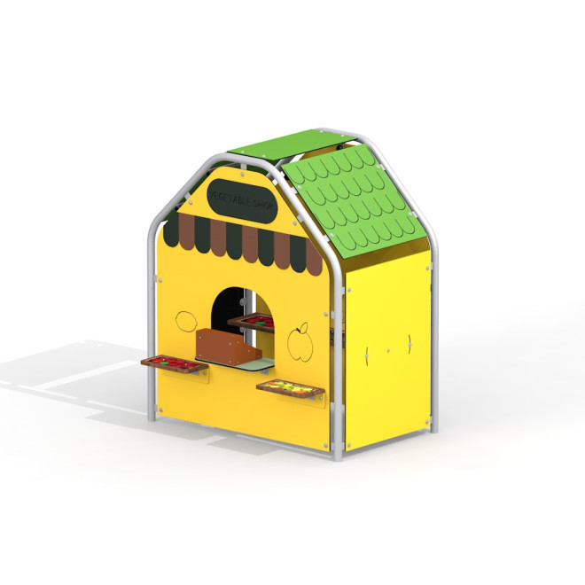 Vegetable shop is a charming playhouse designed to spark imagination and encourage role-playing among young children, making it an excellent addition to any recreational area.